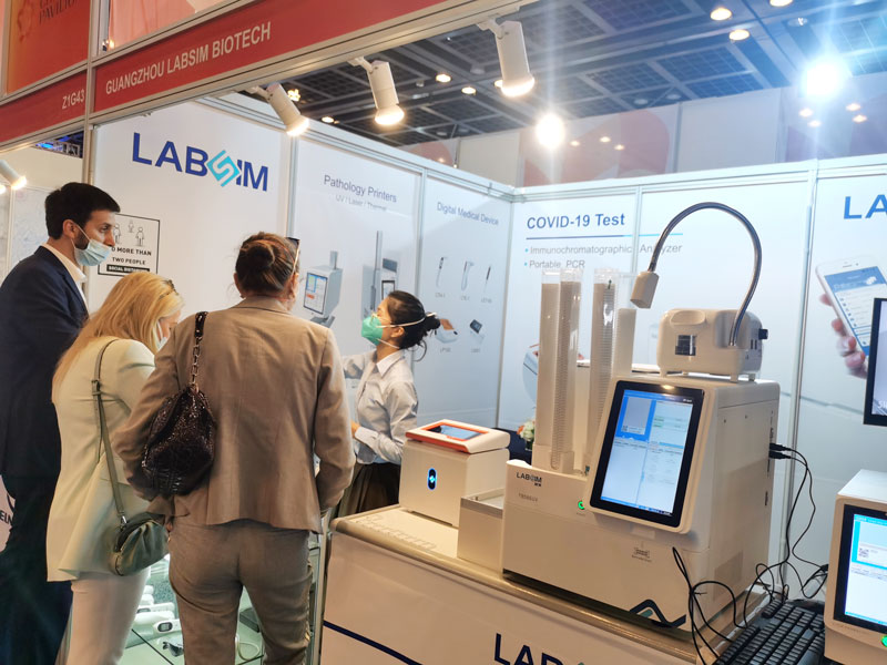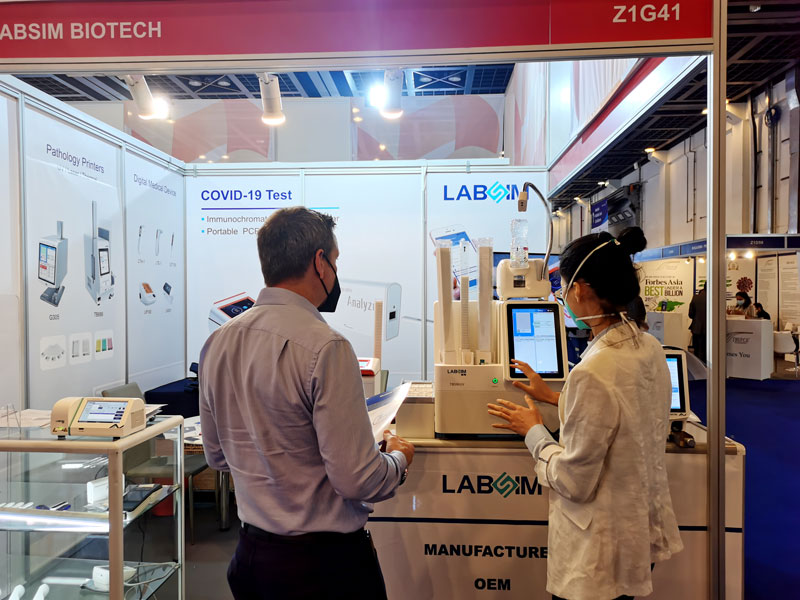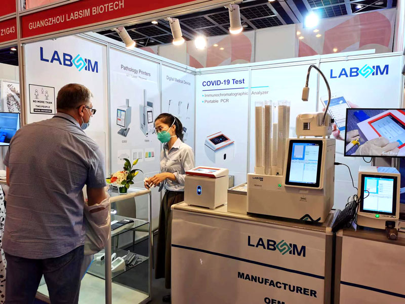 本屆展會(huì)上(shàng)藍(lán)勃生 €(shēng)物(wù)攜幹式熒光(guāng)免疫分(fē™↓n)析儀AFS-1000、手持式幹式熒光(guāng)免" ≥φ疫分(fēn)析儀AFS430、膠體(tǐ)金(jīn)免疫層析分(fēn)析儀AGS100"0,與組織盒激光(guāng)打号機(jī)TB586UV、載玻片熱(rè)轉印打号機(j$±ī)G304等明(míng)星産品亮(liàng)相(xiàng),展會(huì)現(xiàn×וσ)場(chǎng)吸引了(le)大(dà)批觀衆前來↔∞&(lái)溝通(tōng)交流。